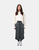 Composizione: 62% cotone e 38% fibre di cellulosa. Questa combinazione di materiali garantisce una gonna resistente e comoda, con il cotone che offre morbidezza e traspirabilità, mentre le fibre di cellulosa aggiungono una sensazione di freschezza e leggerezza.