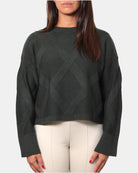 Modello: Maglia a girocollo con maniche lunghe, caratterizzata da un design classico e versatile. Il girocollo ampio e il taglio lineare la rendono un capo adatto a numerosi abbinamenti, dal casual al più raffinato.