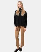 Il pantalone di Liviana conti presenta elastico con coulisse e spacchetti sul fondo, modello a zampa , dalla mano morbida dovuta alla sua composizione in 68% viscosa, 27% poliammide e 5% elastan. Si consiglia lavaggio a mano. La modella è alta 1,69 m e indossa una 40