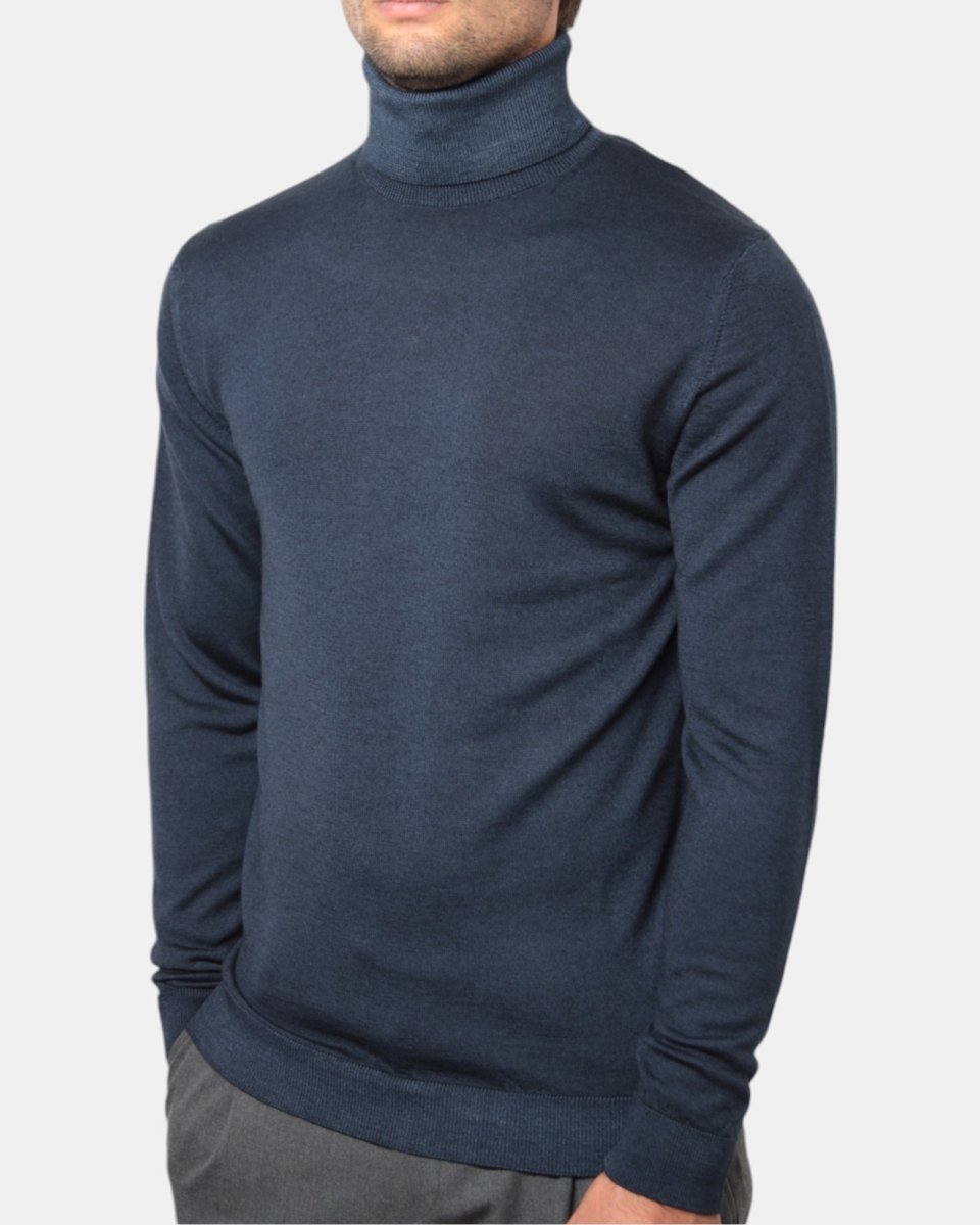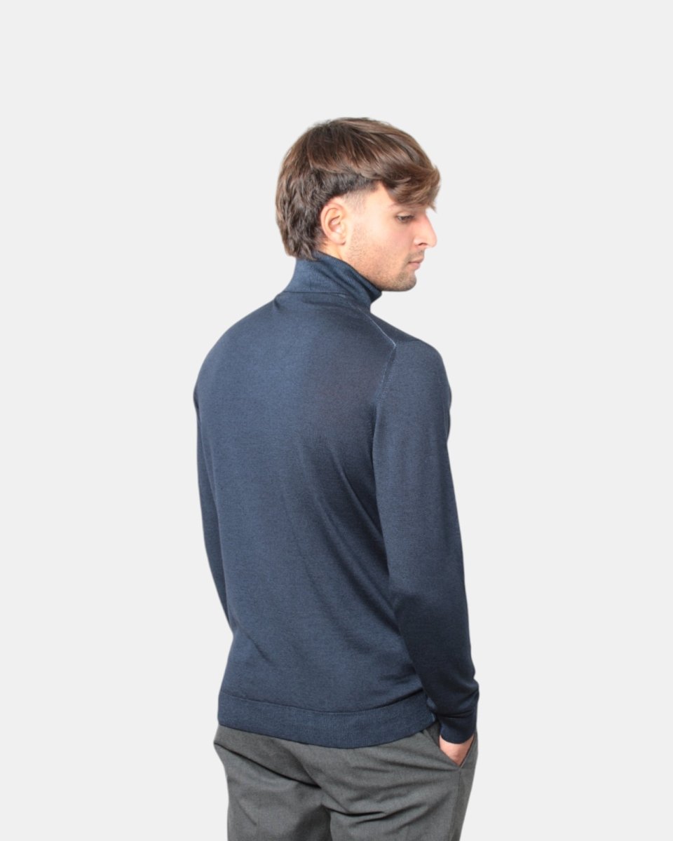 La maglia a dolcevita di Daniele Fiesoli presenta composizione in 100% lana merino, dall’aspetto molto particolare e grintoso dipeso dal trattamento in acido.
