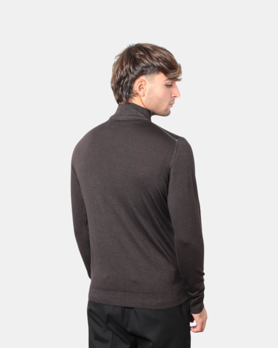 La maglia a lupetto di Daniele Fiesoli presenta composizione in 100% lana merino, dall’aspetto molto particolare e grintoso dipeso dal trattamento in acido.