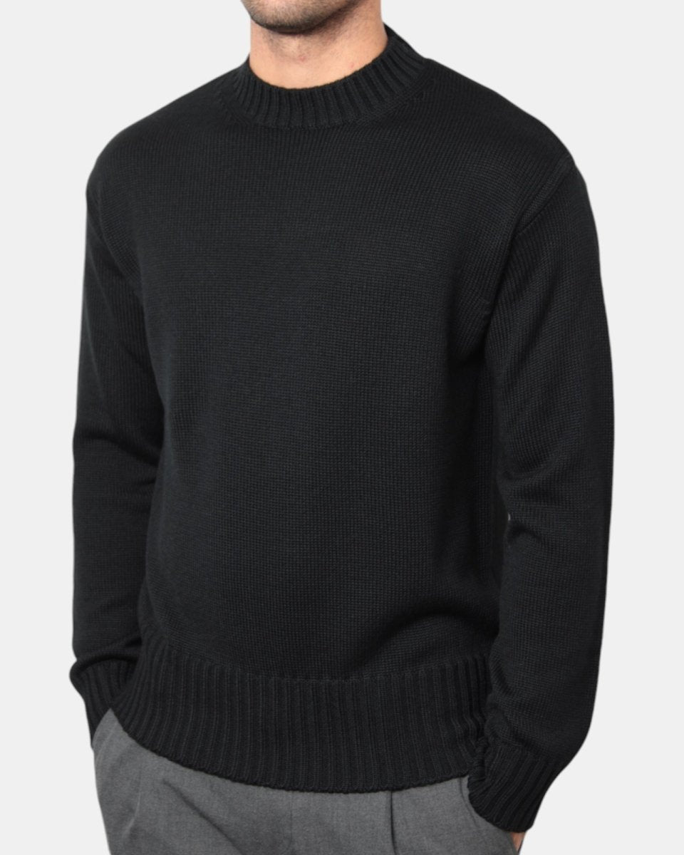 La maglia a girocollo di Daniele Fiesoli dalla lavorazione calata in finezza cinque presenta la sua composizione in 50% lana merino e 50% acrilico garantendo calore e lunga durata.
