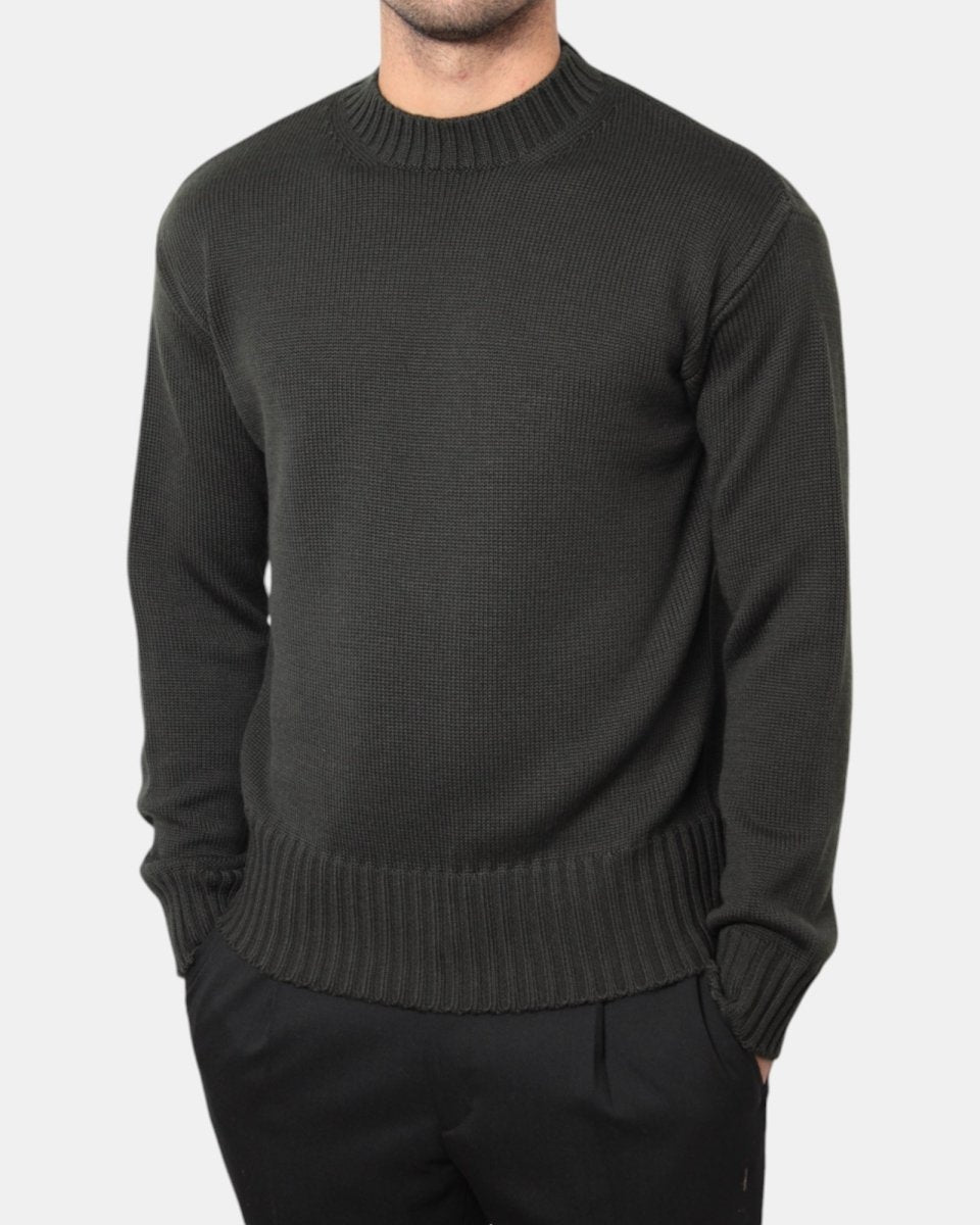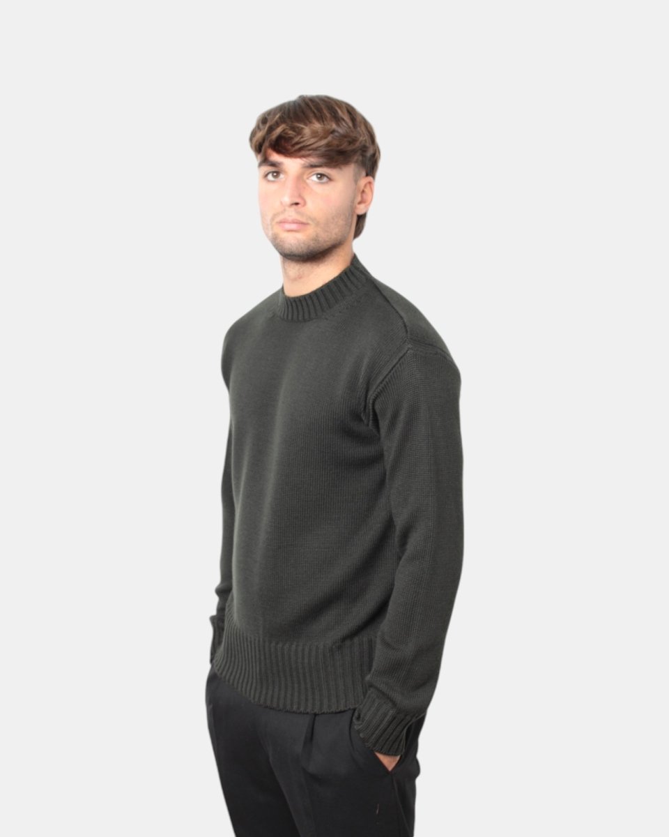 La maglia a girocollo di Daniele Fiesoli dalla lavorazione calata in finezza cinque presenta la sua composizione in 50% lana merino e 50% acrilico garantendo calore e lunga durata.