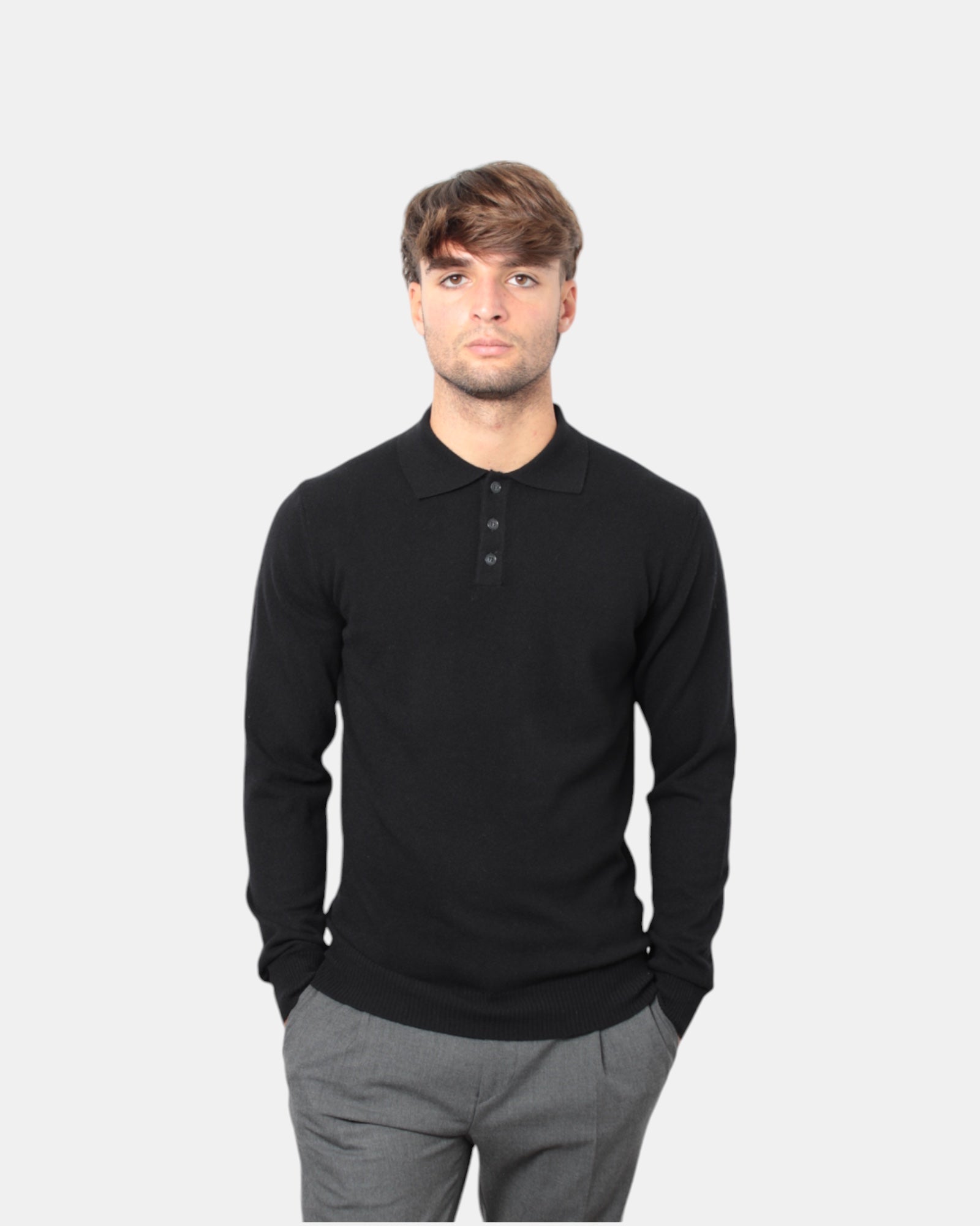 La polo manica lunga di Daniele Fiesoli a chiusura tre bottoni presenta composizione in 90% lana extrafine e 10% cashmere, garantendo calore ed al tatto una sensazione piacevole di morbidezza.