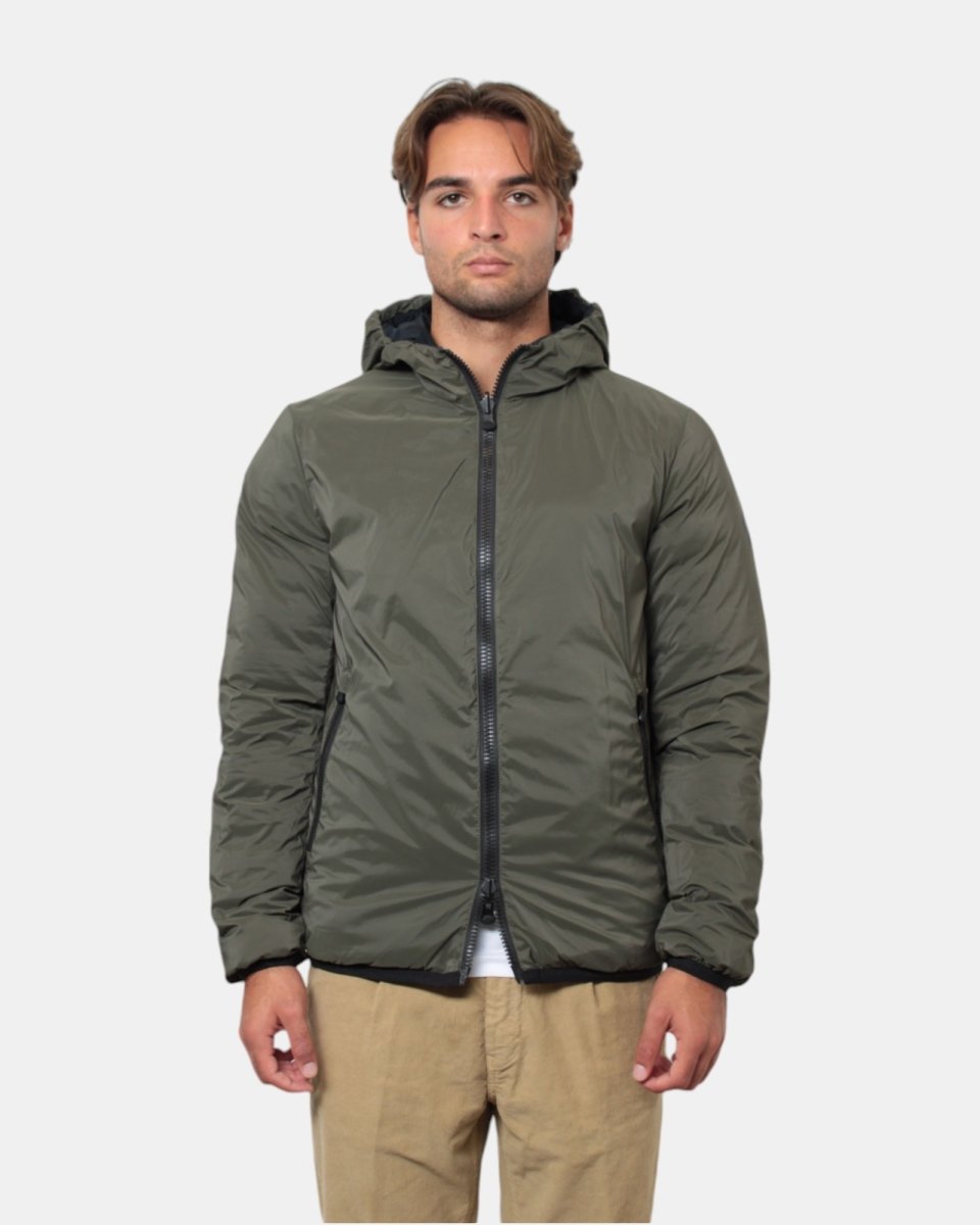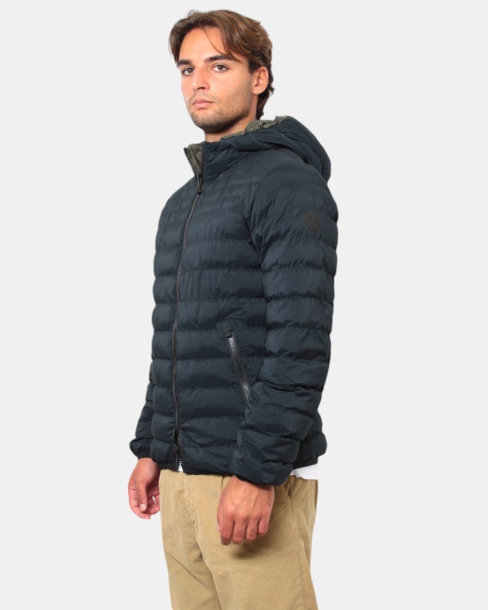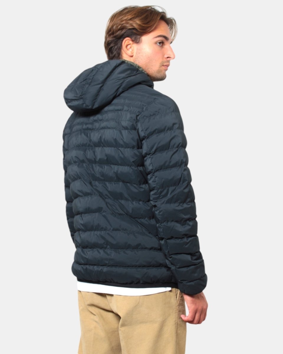 Modello: Giubbotto con cappuccio e design double face, offrendo la possibilità di cambiare il look a seconda delle esigenze.