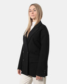 Il cappotto doppiopetto di Solotre a quattro bottoni presenta rever a lancia, due tasche a filo con pattina, tre bottoni sulle maniche . Dall'effetto morbido dovuto alla sua composizione in 65% viscosa, 30% poliammide e 5% elastan . Si consiglia il lavaggio del capo a secco. La modella è alta 1,67 m e indossa una 42