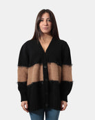 Il cardigan di Solotre presenta fascia con colore in contrasto al centro della maglia, chiusura a quattro bottoni, taschino sul petto e collo, fondo e polsi a costine. Dalla mano calda e soffice dovuta alla sua composizione in 85% lana e 15% cashmere. Si consiglia lavaggio a mano. La modella è alta 1,67 m e indossa una M