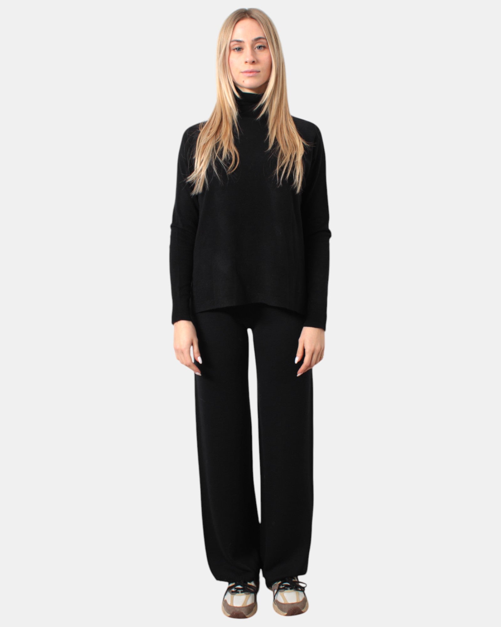 Il pantalone di Solotre presenta elastico in vita, fondo e vita a costine, vestibilità over. Si consiglia lavaggio a mano. La modella è alta 1,69 m e indossa una I