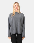 La maglia a girocollo di Solotre presenta collo, fondo e polsi a costine, due tasche frontali a toppa, vestibilità over, dalla mano calda in 100% lana. Si consiglia lavaggio a mano. La modella è alta 1,67 m e indossa una II