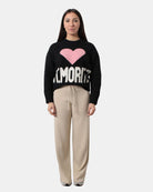 Il pantalaccio in maglia di lana di MC2 Saint Barth dalla mano morbida e calda dovuta dalla sua composizione in 40% lana, 30% viscosa, 20% poliamide e 10% cashmere. Si consiglia lavaggio a mano e stiratura a bassa temperatura. La modella è alta 1,67 m e indossa una XS.