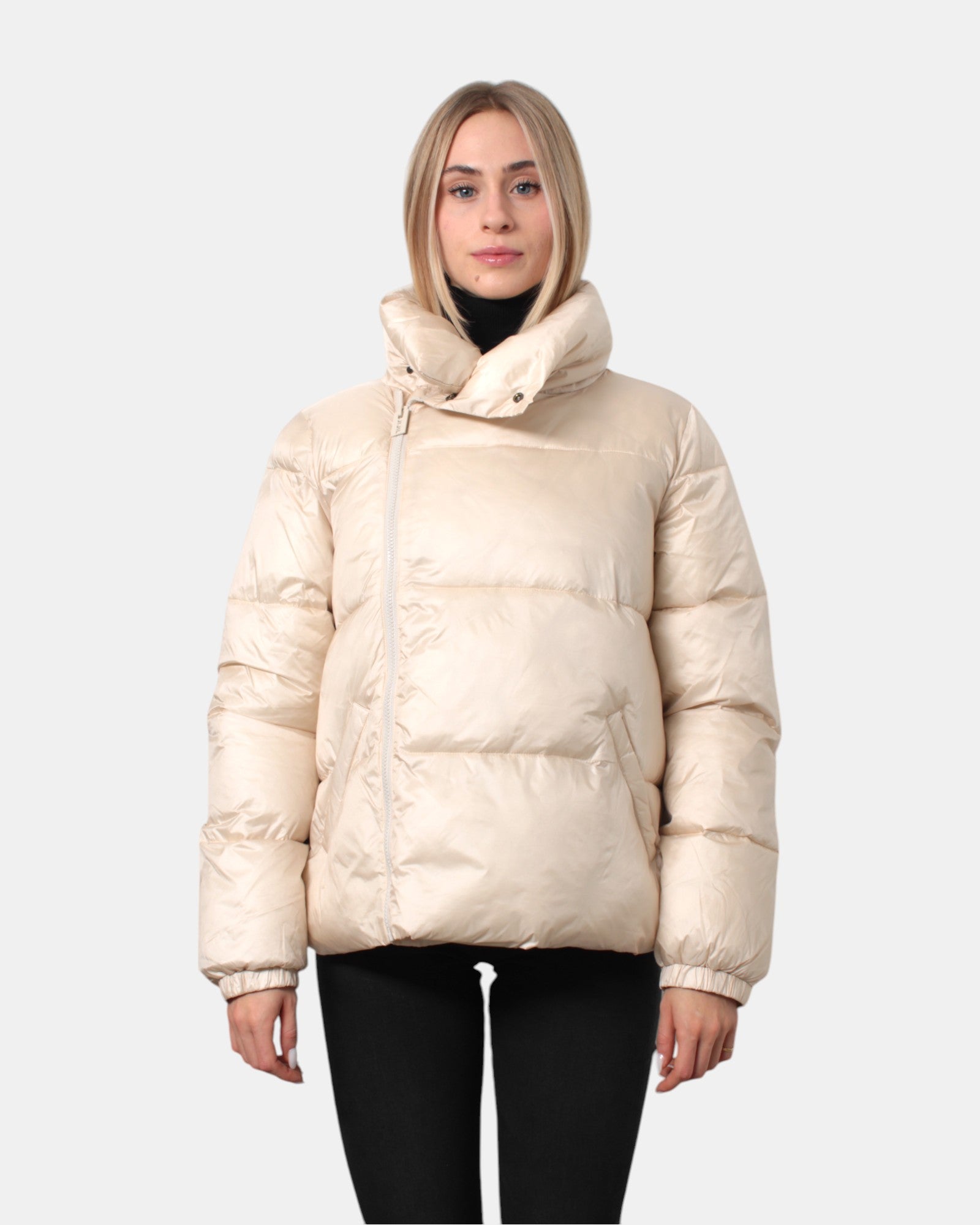 Il piumino di Jijil con collo alto presenta chiusura a zip laterale e bottone a pressione , polsi con elastici, dalla mano morbida e calda dovuta alla sua composizione esterna in 100%poliestere e interna in 100% piuma. Si consiglia il lavaggio in lavanderia. La modella è alta 1,67 m e indossa una 40