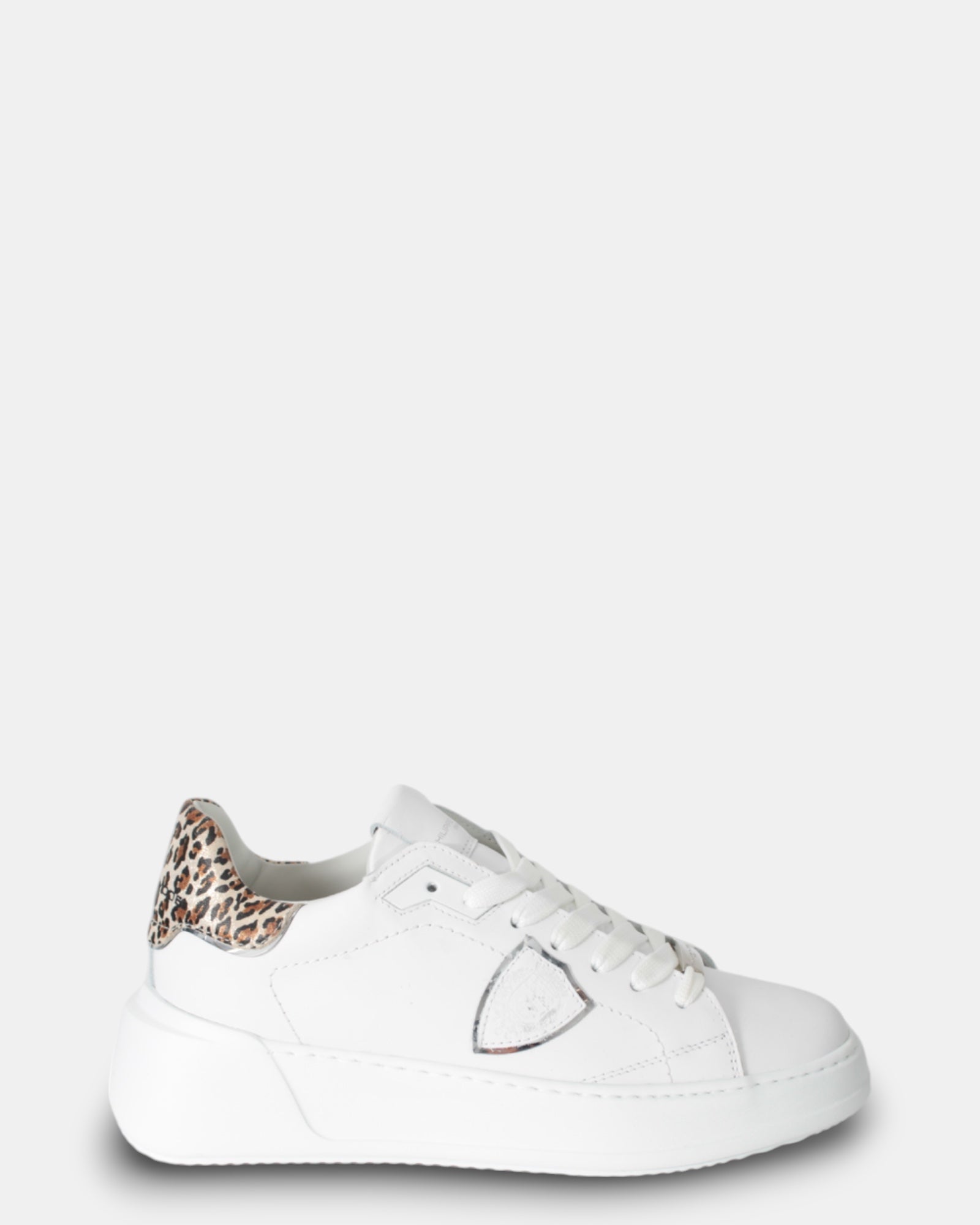 modello: sneaker philippe model con topponcino logato in pelle e stampa animalier, linguetta logata e chiusura con lacci.