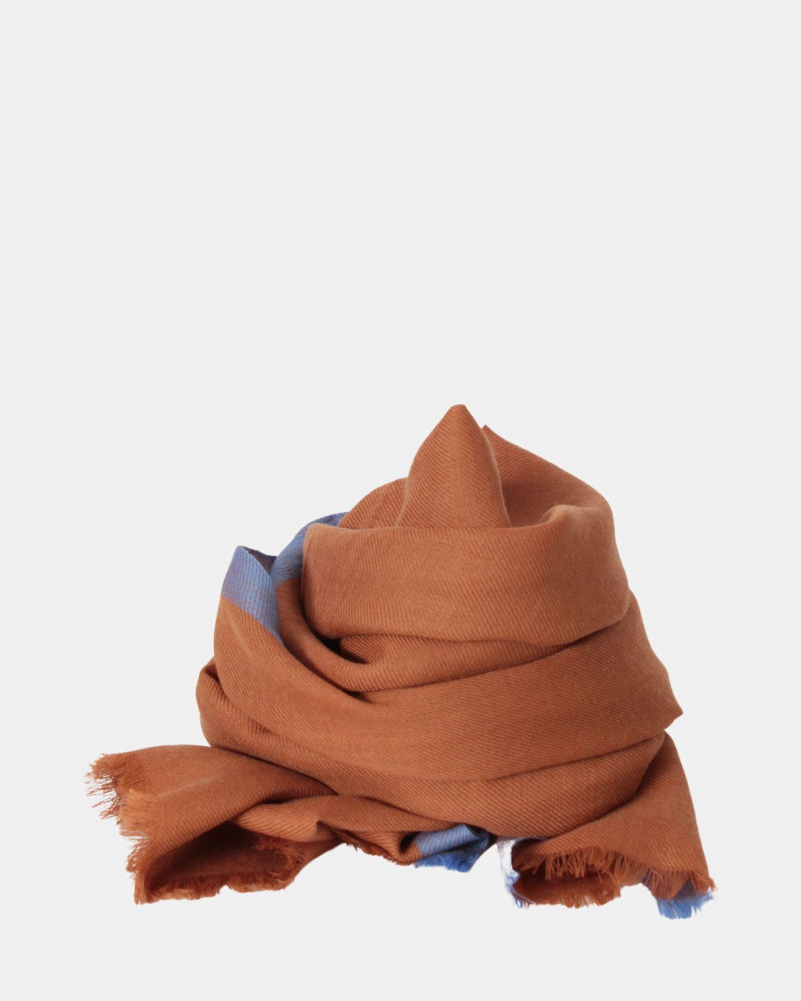 La sciarpa di Altea presenta bordini in contrasto, dalla mano calda dovuta alla sua composizione in 100% lana