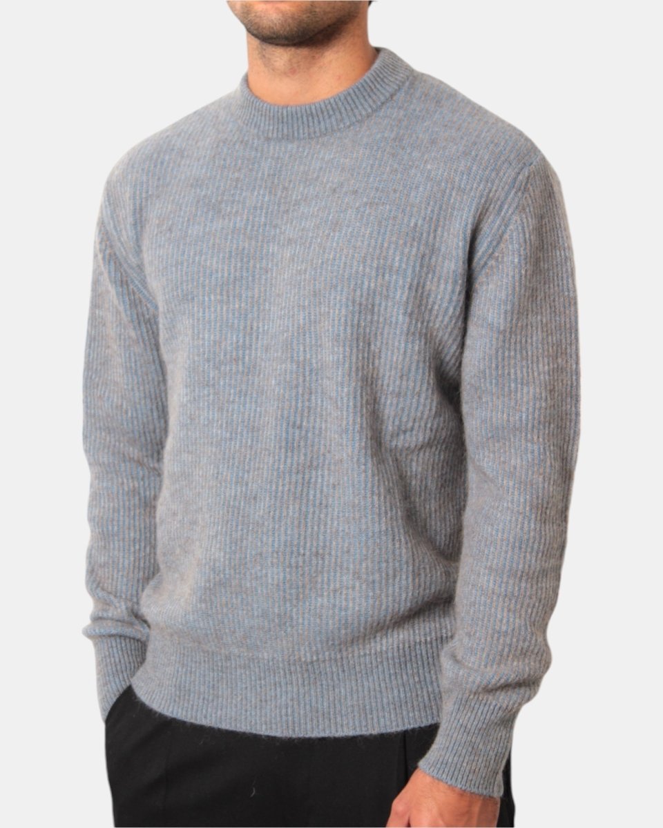 La maglia a girocollo di Altea dalla mano soffice è data dalla sua composizione in 70% lana vergine, 25% alpaca e 5% poliammide.