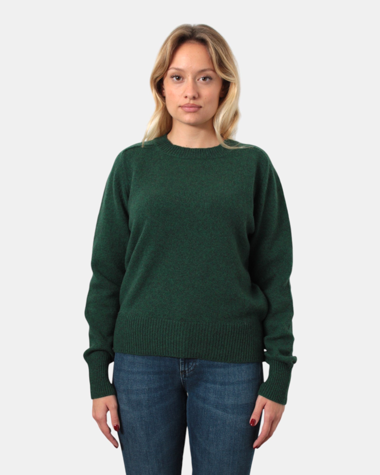 La maglia a girocollo di Daniele Fiesoli con polsi, fondo e collo a costine, dalla mano calda e corposa dovuta dalla sua composizione 100% lana merino. Si consiglia lavaggio amano. La modella è alta 1,67 e indossa una S