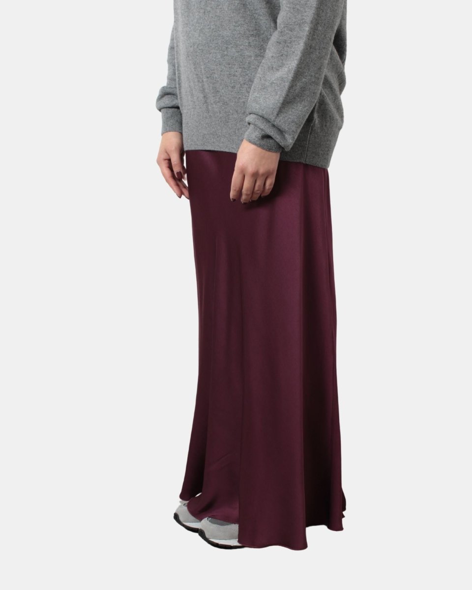La gonna lunga in raso di Daniele Fiesoli modello trapezio è per il 100% viscosa. Si consiglia lavaggio a mano o a secco con stiratura a bassa temperatura. La modella è alta 1,67 m e indossa una S