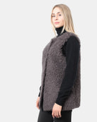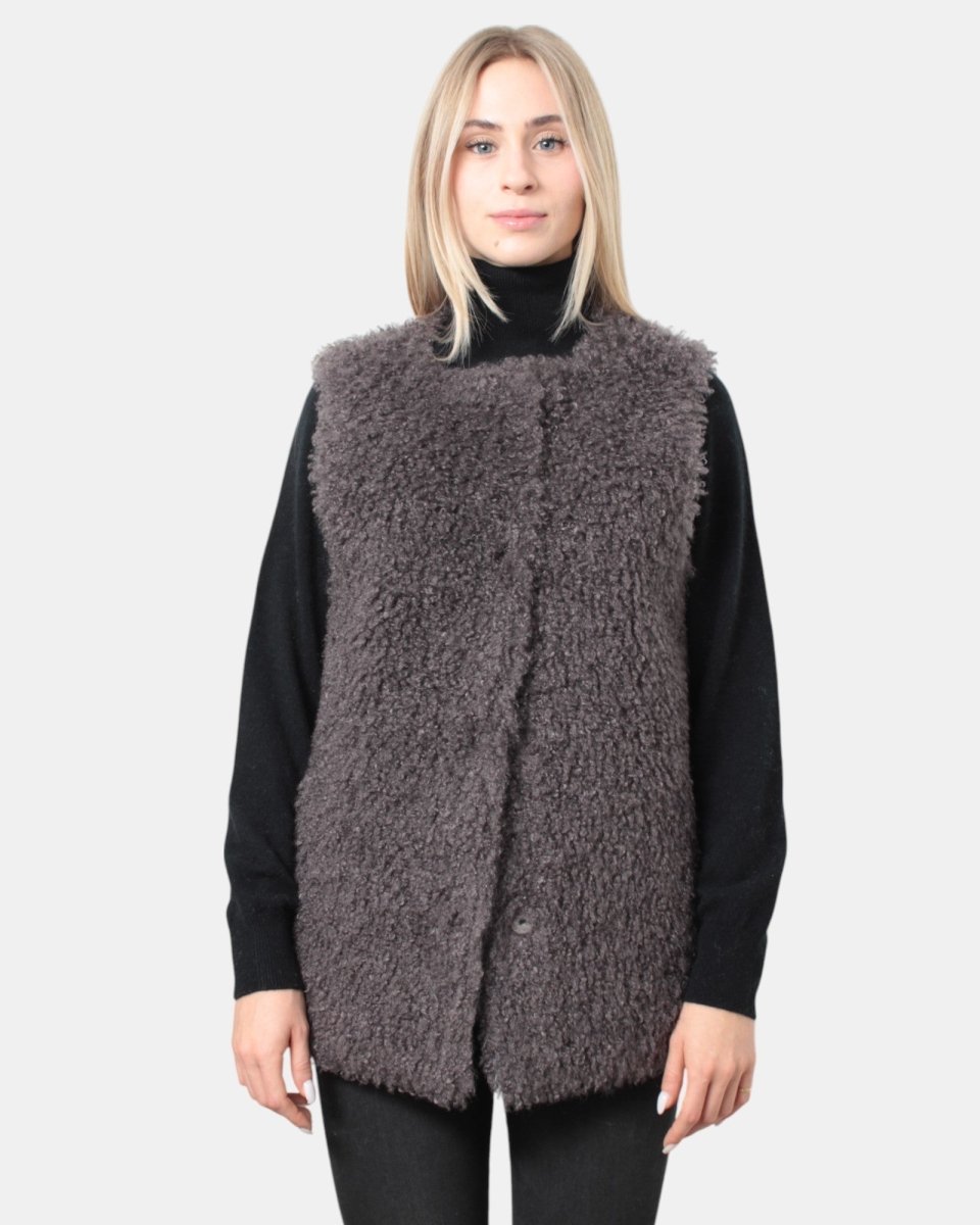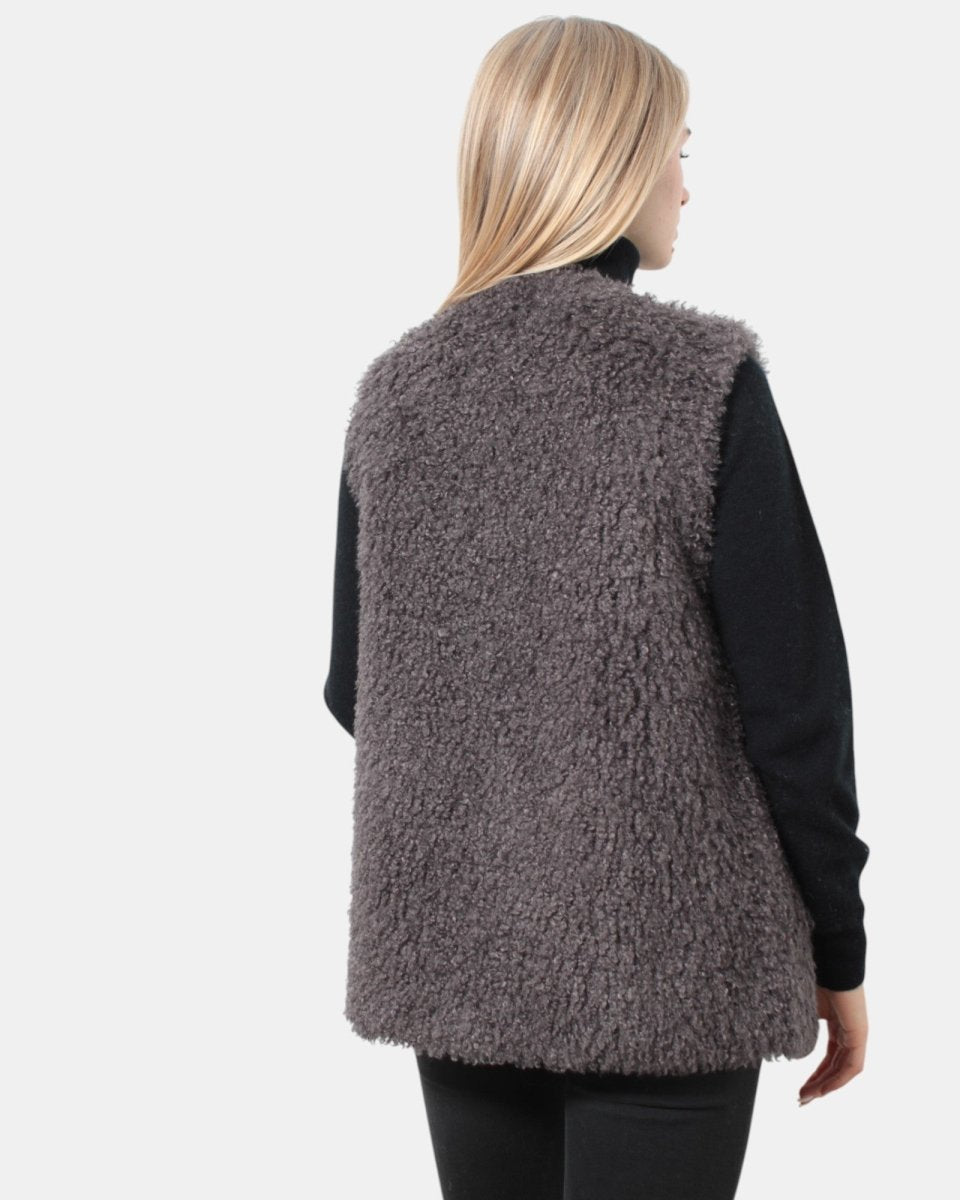 Il gilet di Leon&loulou in pelliccia sintetica presenta pelo arricciato su tutto il rivestimento del capo, chiusura frontale con bottoni e due tasche frontali oblique. Il capo dalla mano soffice e calda è composto per il 100% da poliestere. Si consiglia il lavaggio del capo a secco. La modella è alta 1,67 m e indossa una M