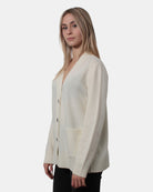Il cardigan di Jucca presenta chiusura a quattro bottoni, due tasche a toppa, polsi e fondo a coste. Dalla mano calda e morbida dovuta alla sua composizione in 100% lana merino. Si consiglia lavaggio a mano. La modella è alta 1,67 m e indossa una M