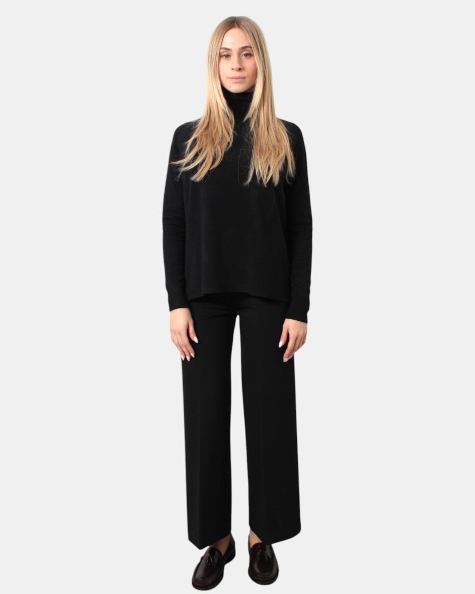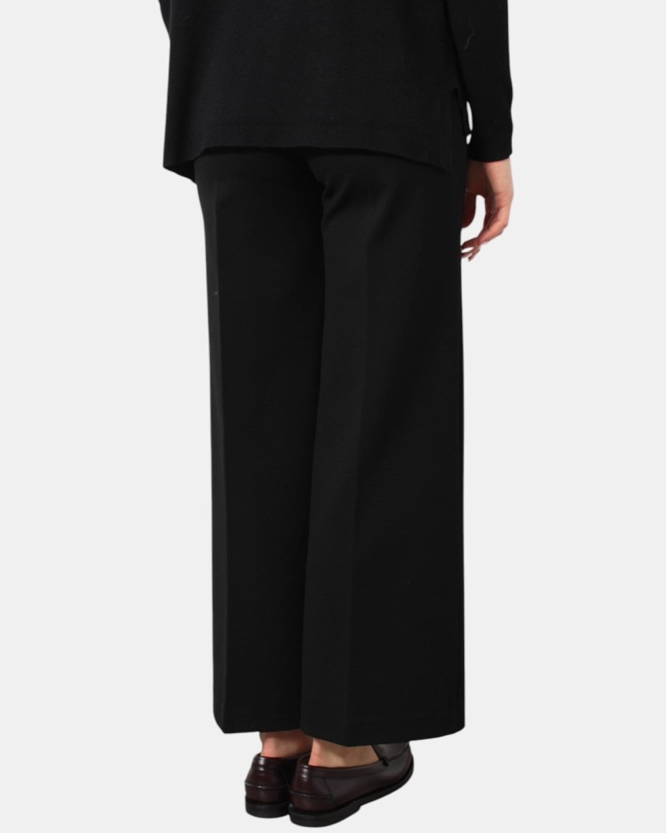Il pantalone di Jucca presenta chiusura a zip frontale, modello svasato corto . Si consiglia lavaggio a max 30 gradi. La modella è alta 1,69 m e indossa una 40