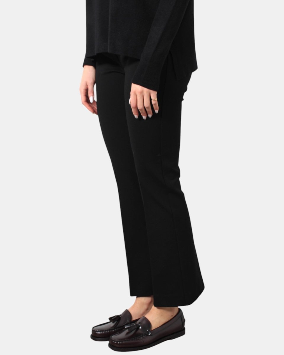 Il pantalone di Jucca presenta chiusura a zip frontale, modello a zampetta . Si consiglia lavaggio a max 30 gradi. La modella è alta 1,69 m e indossa una 40