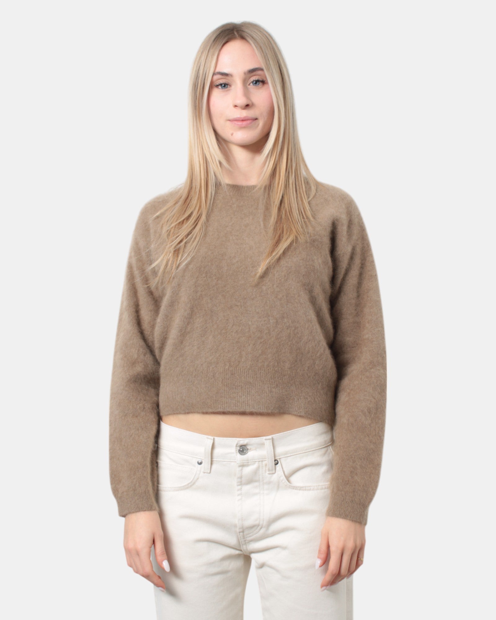 La maglia a girocollo di Jucca dall'effetto peloso presenta collo, fondo e polsi a costine, dalla mano soffice e calda dovuta alla sua composizione in 100% raccoon. Si consiglia lavaggio a secco. La modella è alta 1,67 m e indossa una M