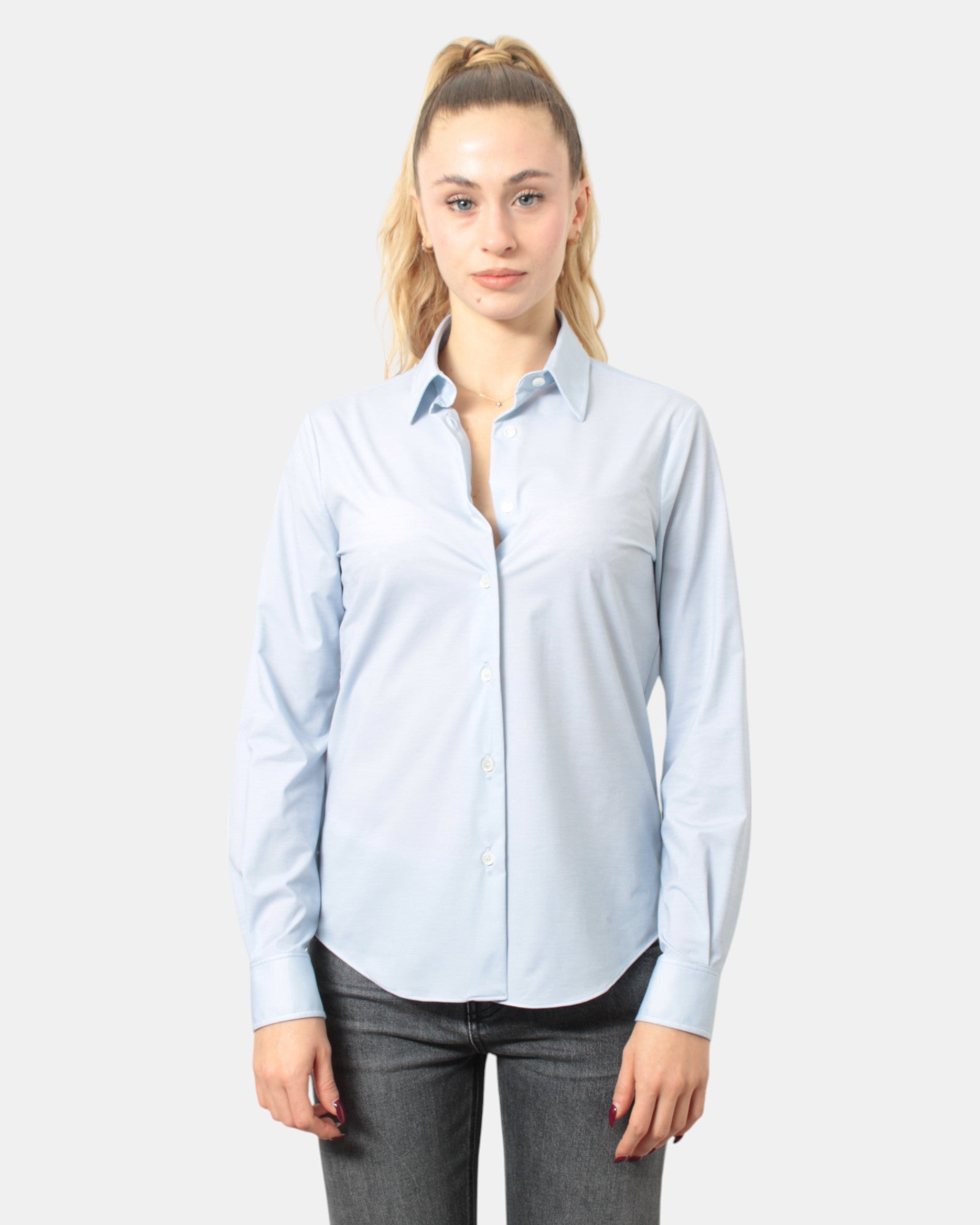 La camicia di Academia presenta chiusura frontale a sei bottoni , polsi con chiusura a bottone, dal suo morbido e avvolgente tessuto composto in 41% poliestere, 41% poliammide e 18% elastan. Si consiglia lavaggio max a 30 gradi. La modella è alta 1.67 m e indossa una L