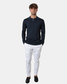 Il pantalone di Be Able alexander presenta tasche america, 2 tasche a filo sul retro, chiusura con zip e bottoni. il pantalone è composto per l'98% da cotone e per il 2% da elastan. Si consiglia lavaggio a mano. Il modello è alto 1,79 m e indossa una 32.