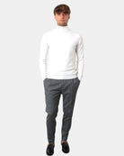 Il pantalone '' Riccardo '' di Be Able presenta elastico con coulisse, chiusura con bottoni e zip, due tasche a filo con una pens, due a tasche a filetto con bottone sul retro, dalla vestibilità regolare è composto per il 54% da lana vergine, 45% poliestere e 1% elastan . Si consiglia lavaggio a secco . Il modello è alto 1,79 m e indossa una 32