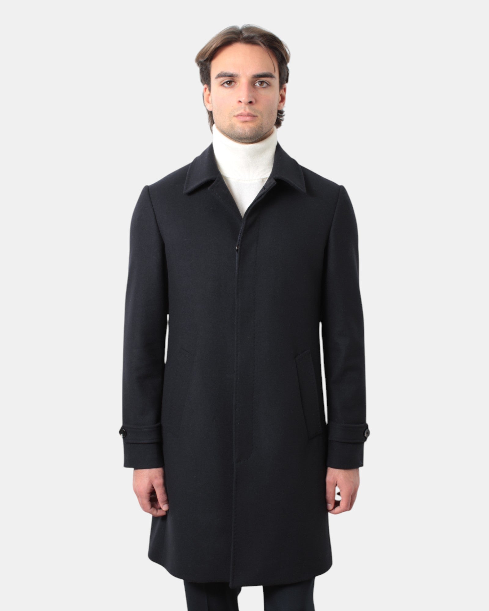 Il cappotto di Gala presenta chiusura a quattro bottoni, due tasche a con pattina oblique, sul retro spacco centrale, dalla mano calda dovuta alla sua composizione in 100% lana. Si consiglia il lavaggio in lavanderie specializzate . Il modello è alto 1,79 m e indossa una 48