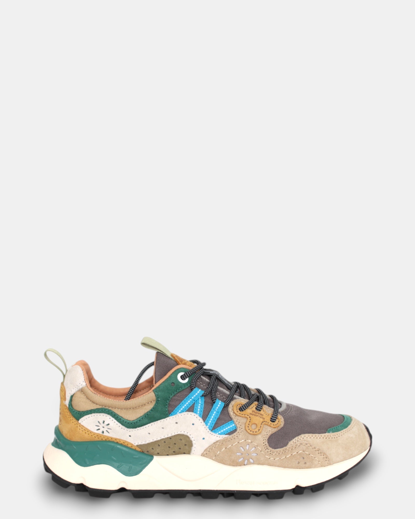 SNEAKERS FLOWER MOUNTAIN MOD. YAMANO 3 - FABRIC TAUPE/WHITE/GREEN