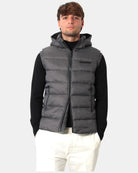 Il piumino smanicato di Arkistar presenta cappuccio asportabile, chiusura con zip doppio cursore, due tasche con zip. Il tessuto è composto da 100% nylon e l' interno da 100% poliestere. Si consiglia lavaggio a mano . Il modello è alto 1,79 m e indossa una M