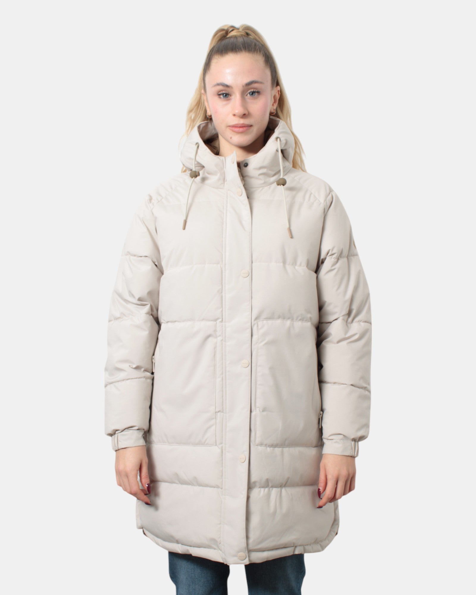 Il giubbotto lungo con cappuccio di Tanta presenta chiusura frontale con zip e bottoni a pressione, due tasche frontali con zip, due sppacchetti laterali con chiusura a bottoni. Dalla mano soffice dovuta alla sua composizione in 100% poliestere. Si consiglia il lavaggio in lavanderie specializzate . La modella è alta 1,67 m e indossa una 40