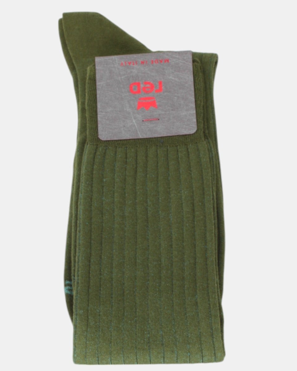 La calza lunga di Red presenta costine bicolore e dalla sua composizione in 72% cotone e 28% elastan