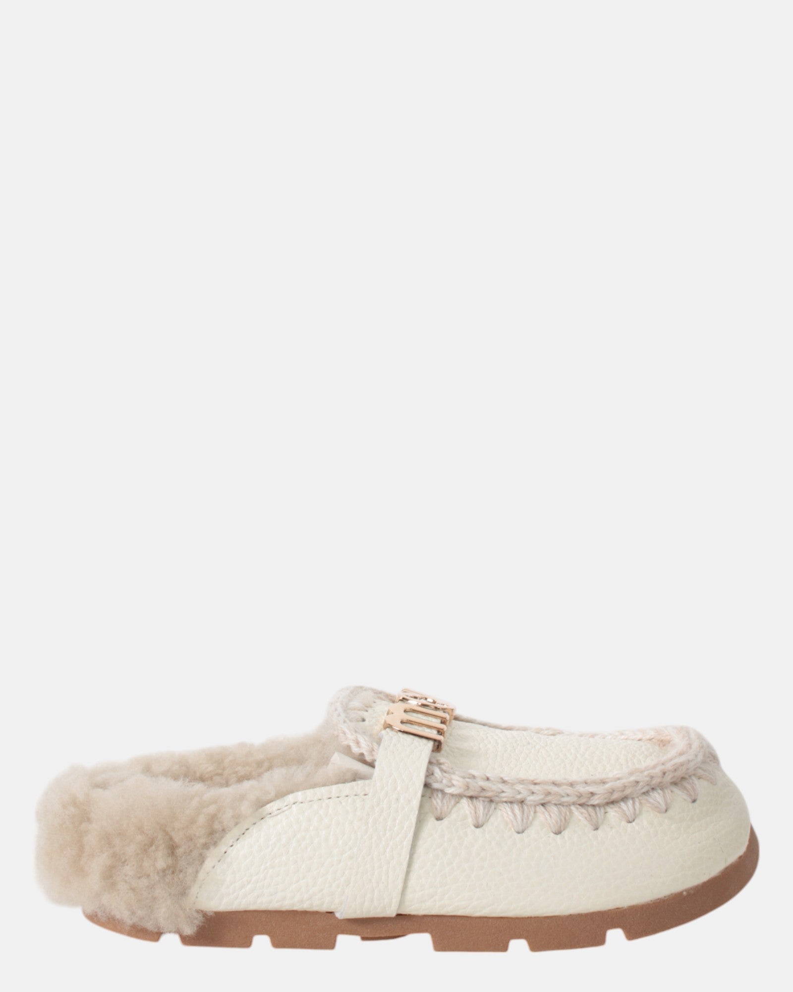 La pantofola di Mou è realizzata in cavallino e montone. Il modello sling back presenta tomaia cavallino, con logo lettera in metallo, cuciture in lana all’uncinetto, suola interna in montone con lavorazione boucle e suola esterna in Eva e gomma. Calzata regolare. Si consiglia di pulire l’articolo con un panno morbido ed asciutto. Tenere lontano dalla luce diretta, dal calore e dalla pioggia, asciugare subito con un panno morbido in caso di contatto con acqua.