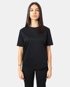 La t-shirt di Max Mara presenta fantasia monocolore, logo brand sul fondo della maglia, dalla mano leggera dovuta alla sua composizione in 51% modal e 49% cotone. Si consiglia lavaggio a mano. La modella è alta 1,68 m e indossa una S