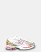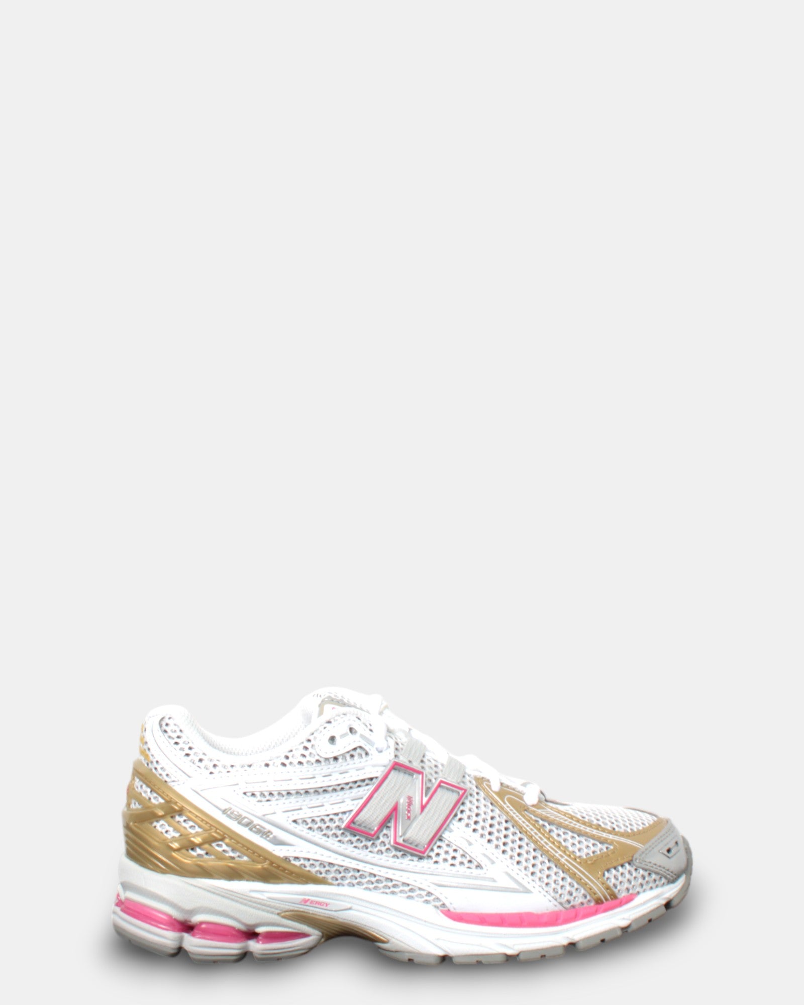 La sneaker modello 1906 di New Balance presenta tomaia in materiale sintetico, con dettagli argentati sulla tomaia, logo stampato su ambo i due margini, chiusura con lacci. La calzata è regolare