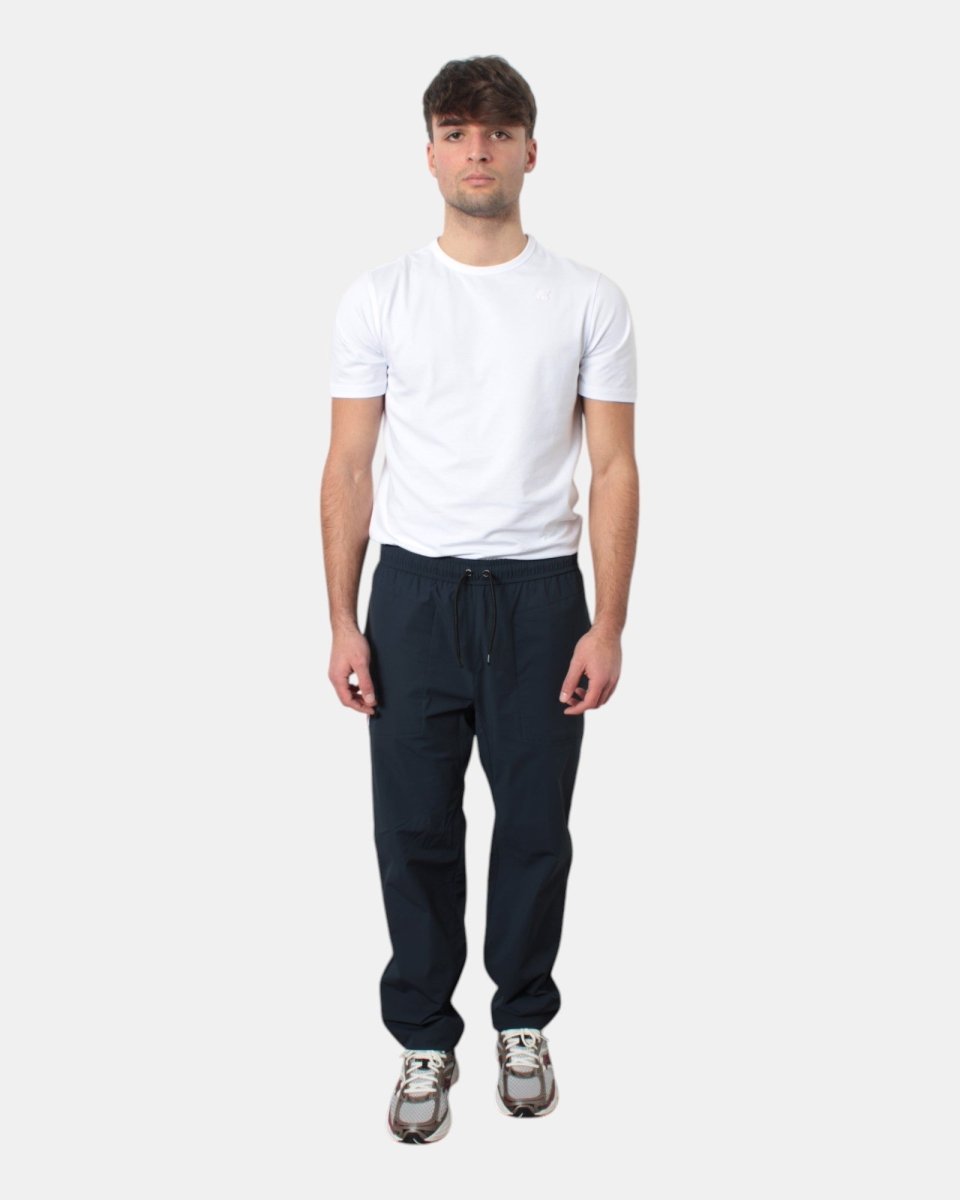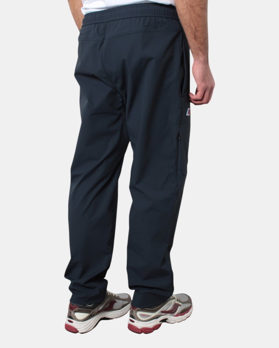 Il pantalone in tessuto tecnico di K-way presenta logo brand sul lato destro, presenta tasche laterali con chiusura a zip, coulisse in vita, dalla mano fresca dovuta alla sua composizione in 85% poliestere e 15% elastan. Si consiglia lavaggio a massimo 30 gradi. Il modello è alto 1,78 m e indossa una M