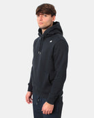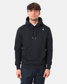 La felpa con cappuccio di K-way presenta tascone frontale, logo brand sul petto, laccetti per regolare il cappuccio e vestibilità leggermente over, dalla mano morbida dovuta alla sua composizione in 92% cotone e 8% poliammide. Si consiglia lavaggio a massimo 30 gradi. Il modello è alto 1,78 m e indossa una M