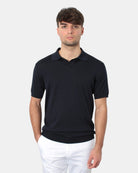 La polo a manica a corta di Kangra in rasato, presenta collo, maniche e fondo a costine, fantasia monocolore, dalla mano fresca e morbida dovuta alla sua composizione in 60% seta e 40% cotone. Si consiglia lavaggio a mano. Il modello è alto 1,78 m e indossa una 50