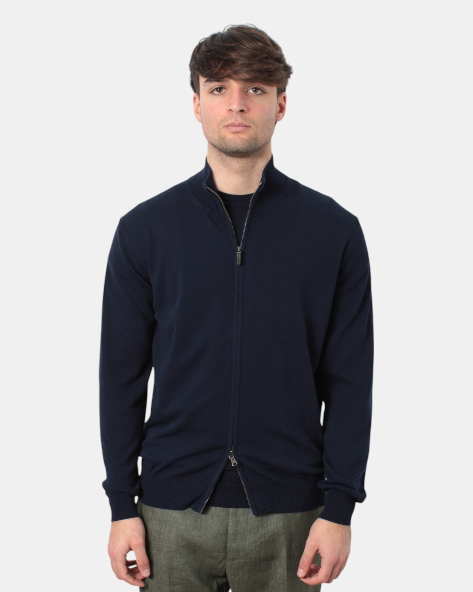 MAGLIA A ZIP DI KANGRA IN RASATO CALATO - 38 BLU