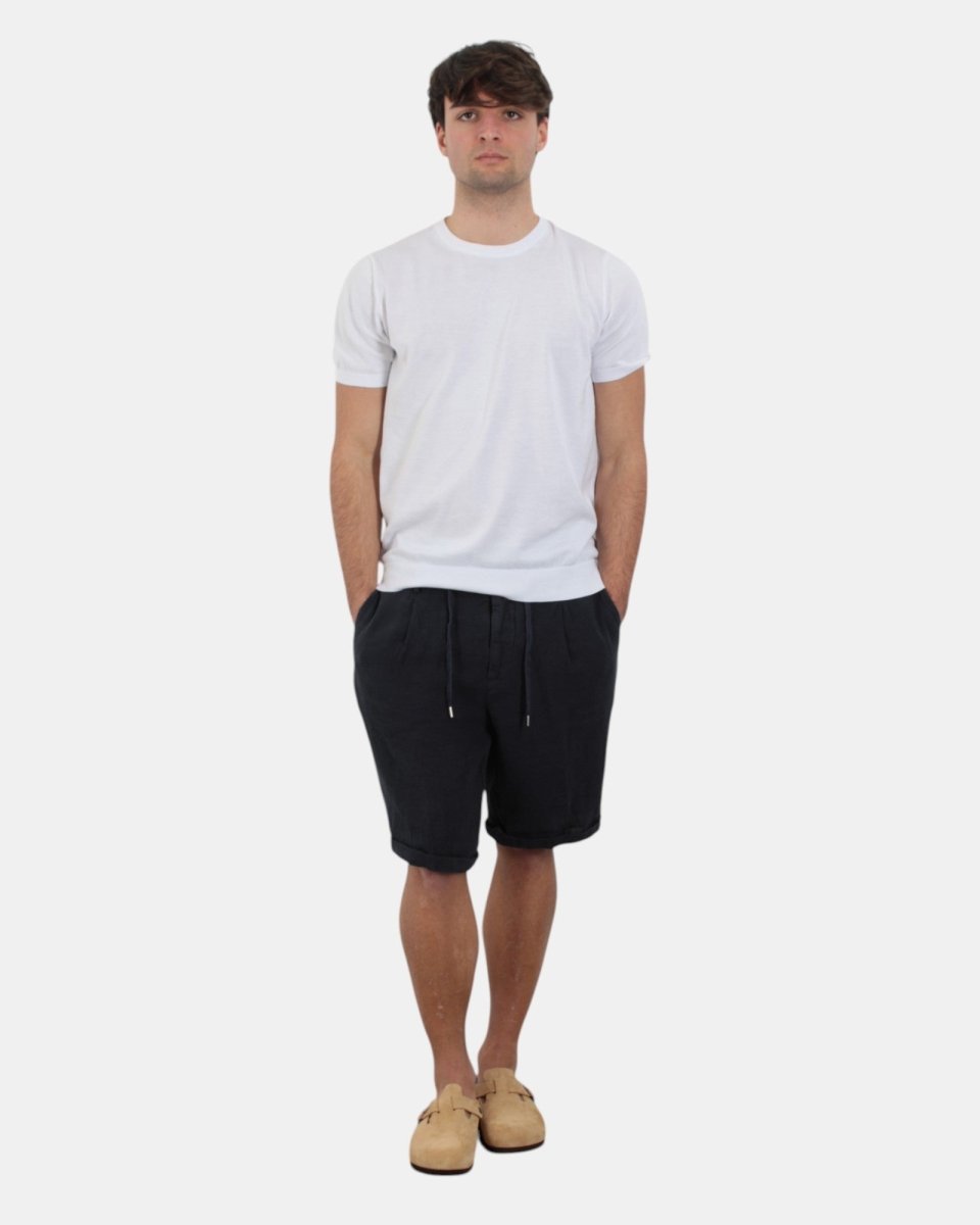 BERMUDA IN LINO 40 WEFT CON COULISSE - W1738 BLU