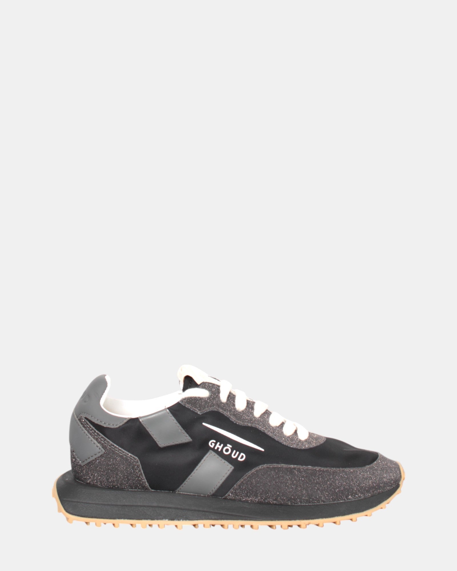 La sneakers di Ghoud presenta tomaia in tela con dettagli glitterati, tomaia leggermente alta, logo sulla parte esterna, presenti all'interno della scatola anche lacci in tinta con la scarpa. La calzata è regolare