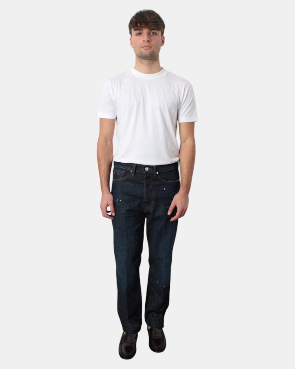 Il jeans di Nine in the Morning presenta lavaggio con schizzi di vernice diffusi su tutto il capo, tasche frontali, due tasche a toppa sul retro con dettaglio logo brand, chiusura a bottoni. vestibilità larga, dalla mano fresca dovuta alla sua composizione in 100% cotone. Si consiglia lavaggio a massimo 30 gradi. Il modello è alto 1,78 m e indossa una 31