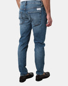 Il jeans di Nine in the Morning presenta rotture dovute al lavaggio leggermente chiaro, tasche frontali, due tasche a toppa sul retro con dettaglio logo brand, chiusura a bottoni. vestibilità leggermente over, dalla mano fresca dovuta alla sua composizione in 98% cotone e 2% elastan. Si consiglia lavaggio a massimo 30 gradi. Il modello è alto 1,78 m e indossa una 31