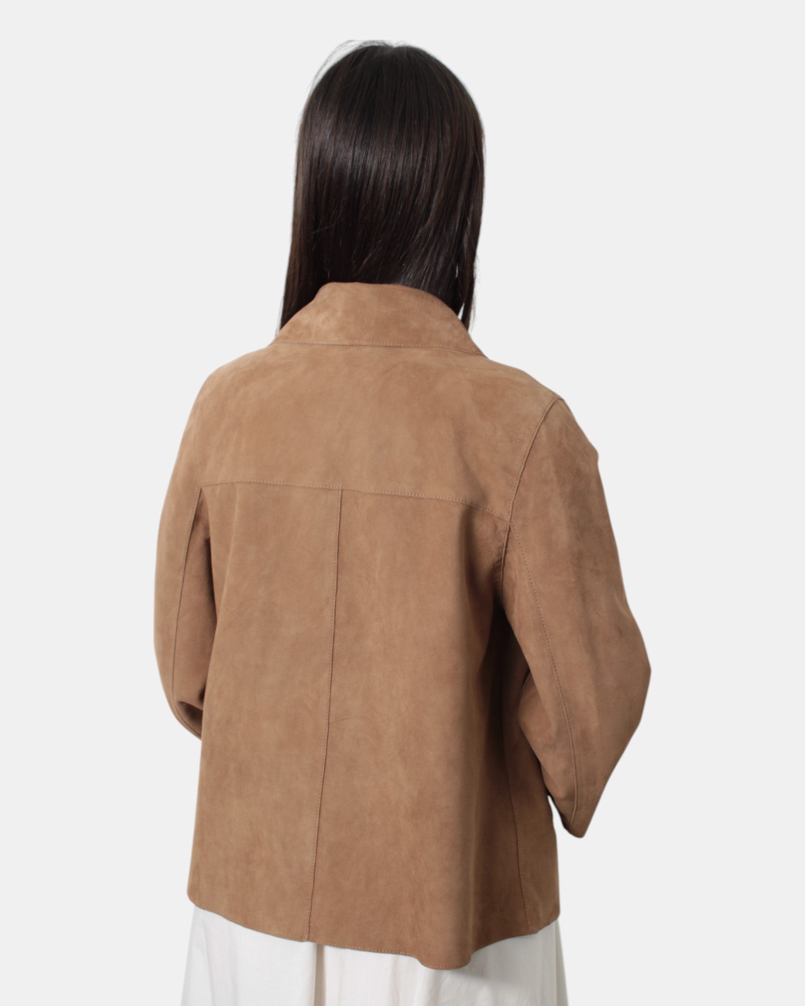 La giacca in pelle di The Jackie presenta fantasia camoscio d'oro, chiusura a zip obliqua, due tasche oblique, giro sceso, dalla mano morbida dovuta alla sua composizione in 100% pelle. Si consiglia lavaggio in lavanderie specializzate. La modella è alta 1,68 m e indossa una 42