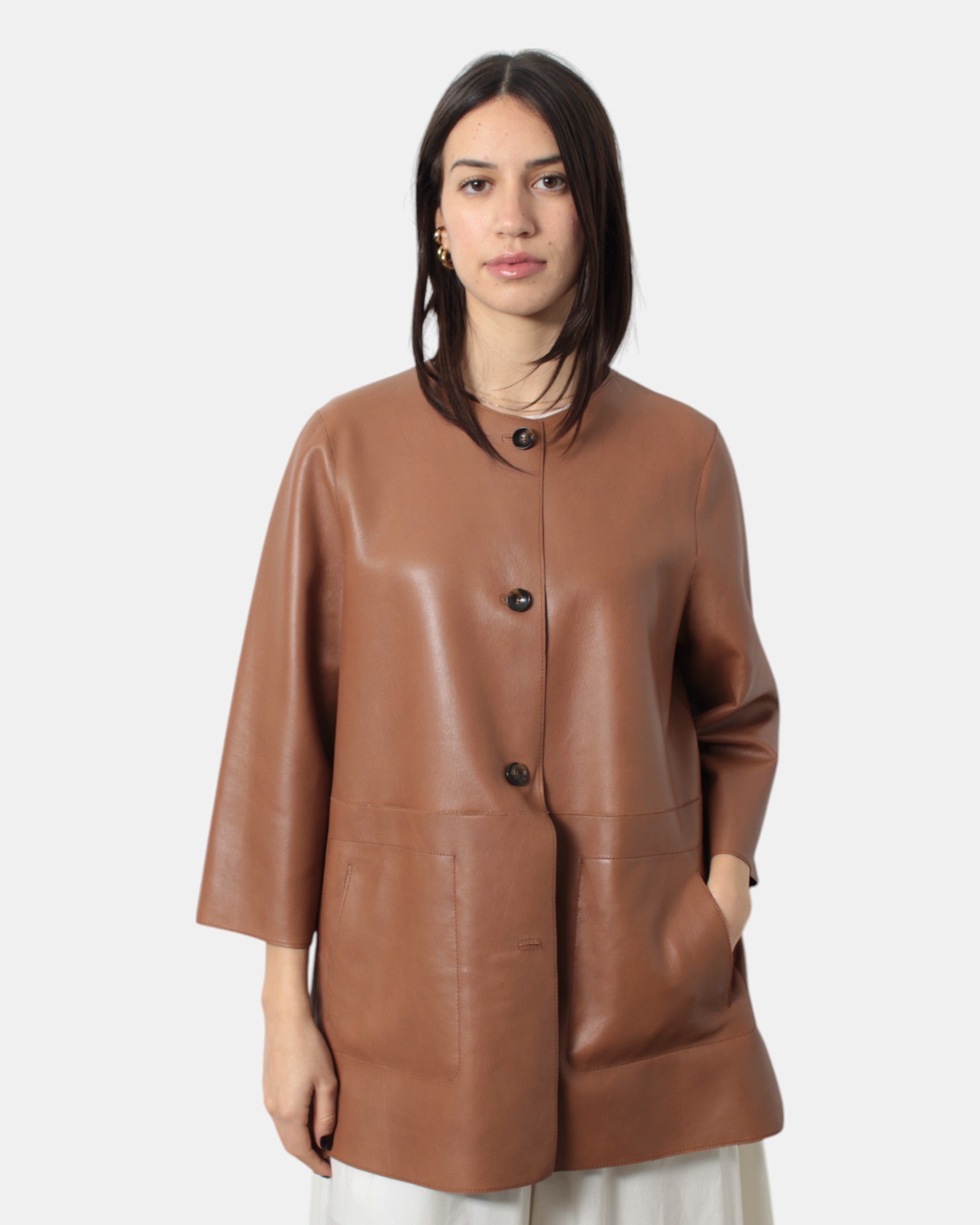 GIACCA IN PELLE THE JACKIE MOD. DOM REVERSIBLE - 14 CAMEL