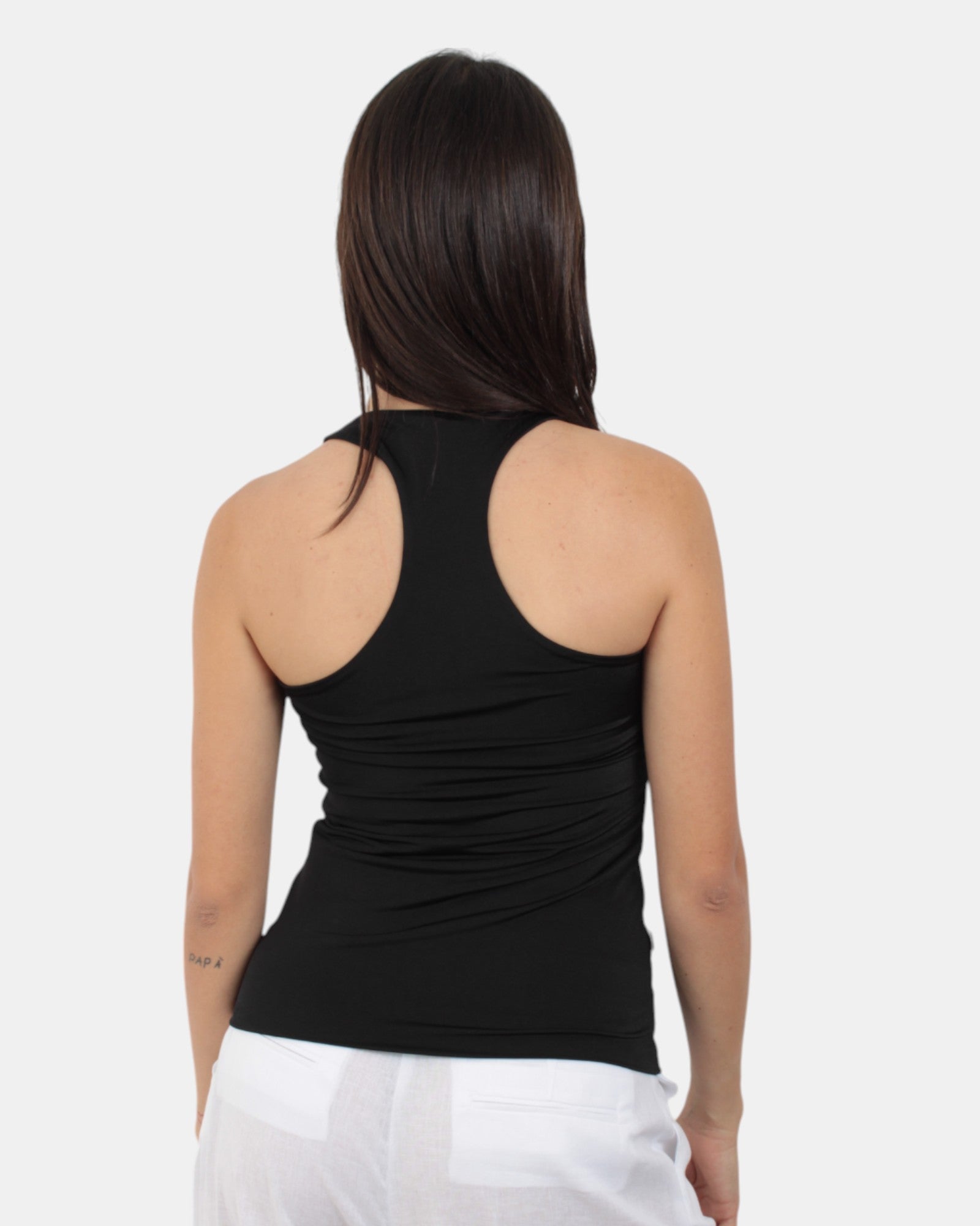 Canotta di Jijil è realizzata in poliestere e elastan. è un modello con girocollo e sorretto da spalline. Composizione in 95% poliestere e 5% elastan. Si consiglia lavaggio a massimo 30 gradi. La modella è alta 1,68 m e indossa una 42.