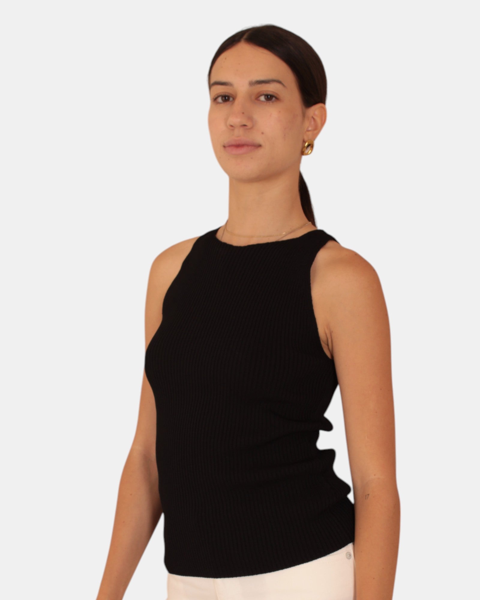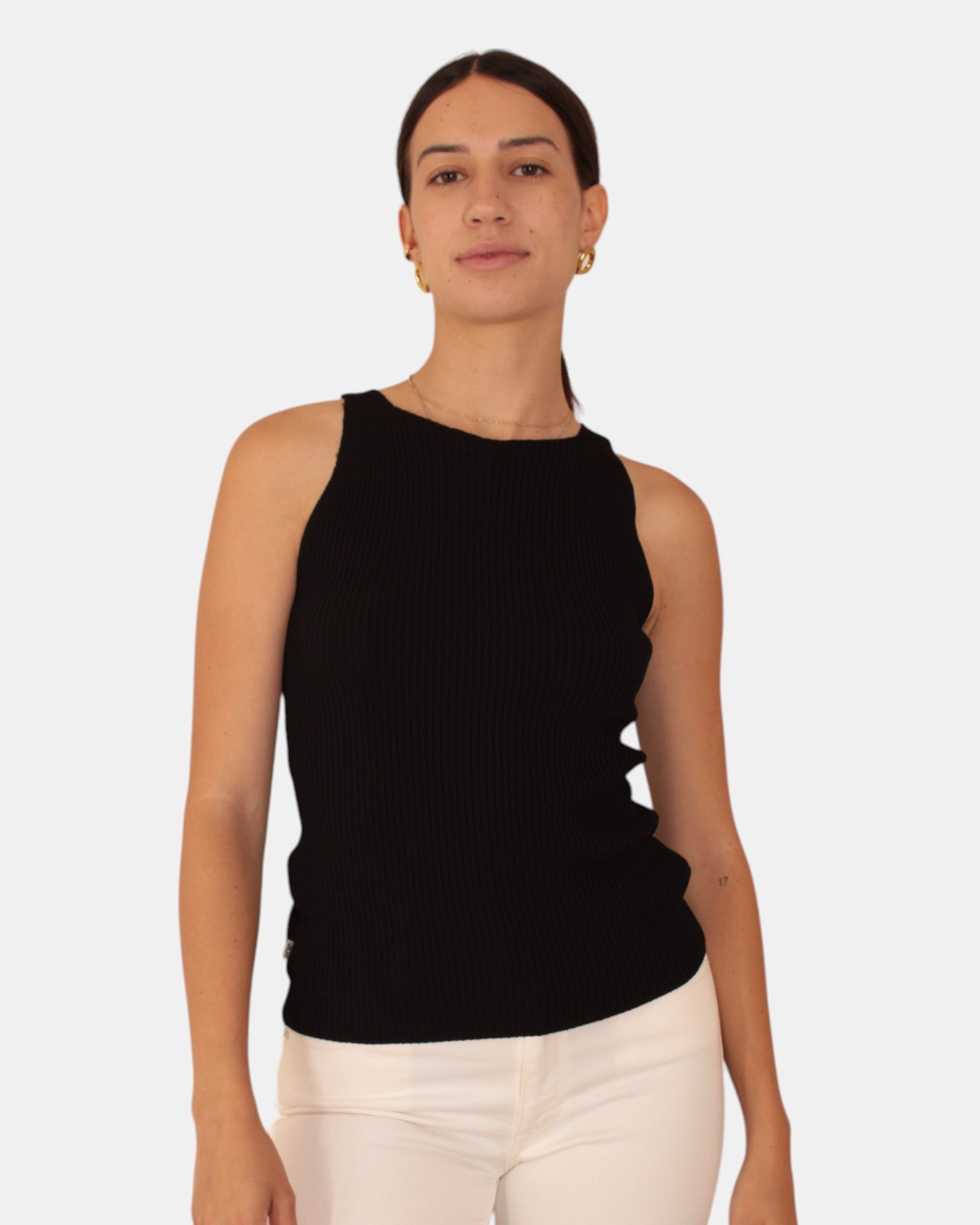 la Canotta di Jijil presenta girocollo e modello smanicato, realizzata in tessuto elasticizzato a costine che valorizza la silhouette. composizione in 65% VISCOSA 35% POLIAMMIDE. Si consiglia lavaggio a massimo 30 gradi. La modella è alta 1,68 m e indossa una S