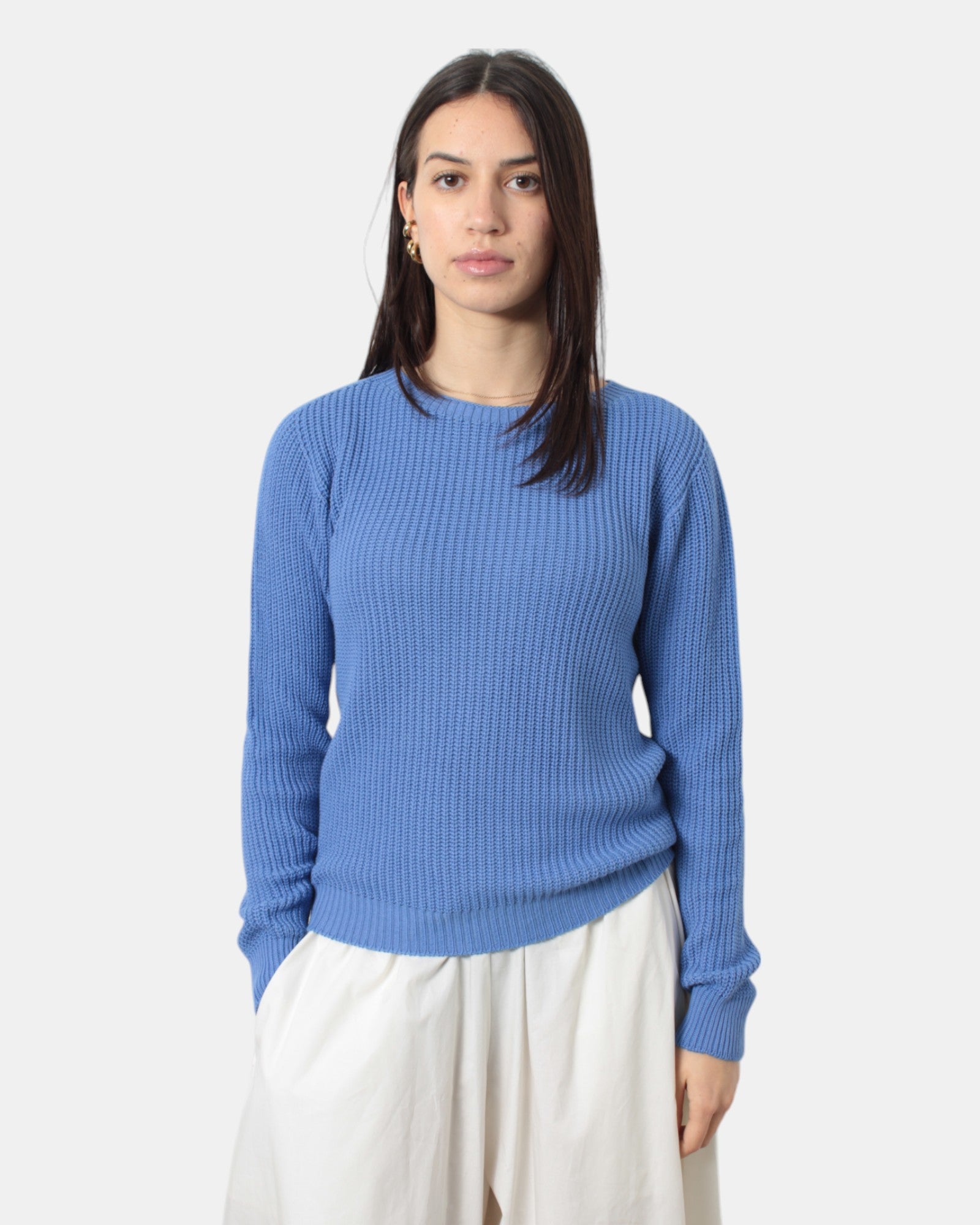 La maglia a girocollo di Hekla&co presenta collo, fondo e polso a costine, fantasia a losanghe piccole, dalla mano fresca dovuta alla sua composizione in 100% cotone. Si consiglia lavaggio a mano. La modella è alta 1,68 m e indossa una S