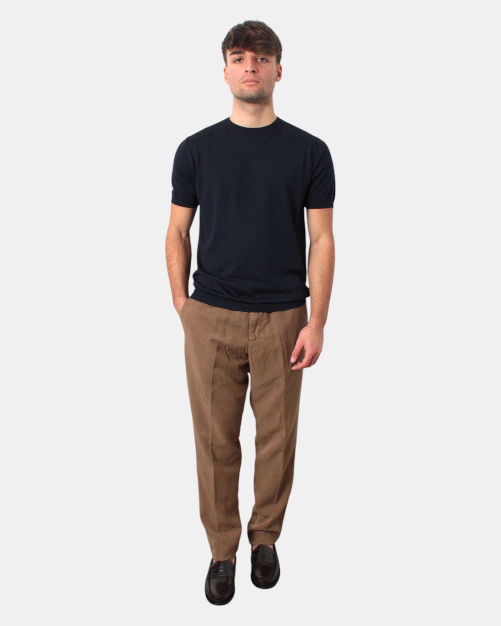 PANTALONE CON COULISSE WHITE SAND IN MISTO LINO - 48 MARRONE